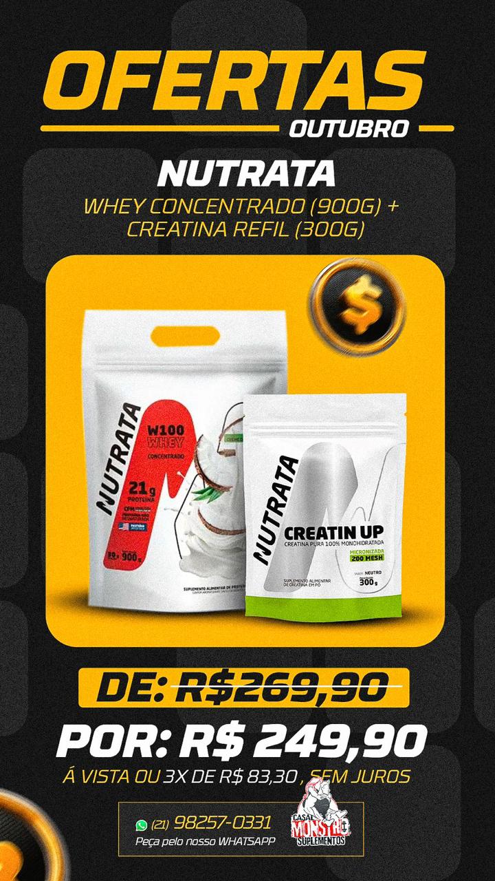 Conheça o Combo Nutrata com Whey Concentrado W100 900g e Creatina Refil 300g, ideal para quem busca aumento de massa muscular e melhor desempenho nos treinos.